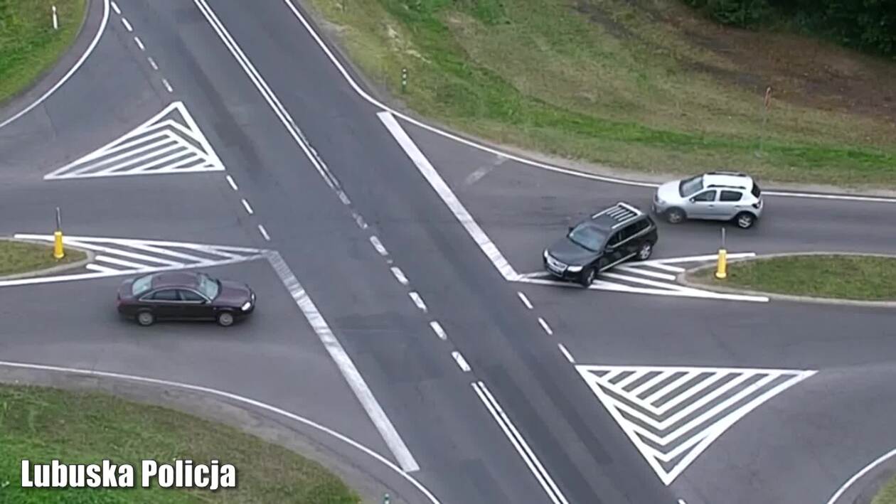 Policyjny dron zarejestrował groźny wypadek na skrzyżowaniu, do którego doszło w powiecie krośnieńskim w woj. lubuskim. W wyniku zderzenia trzech pojazdów jedna osoba została ranna i trafiła do szpitala.