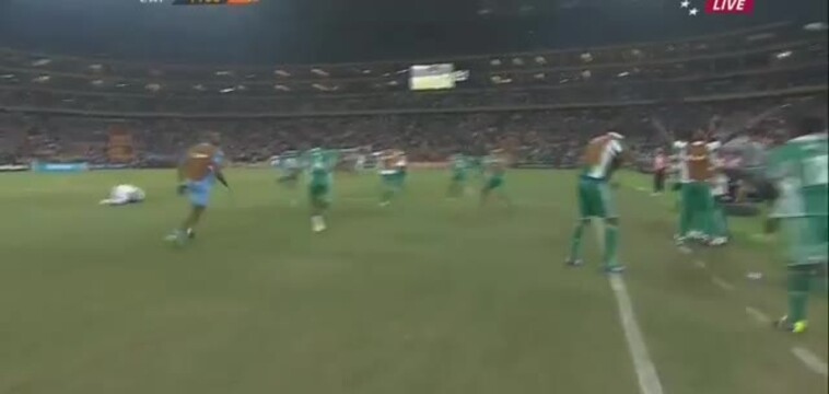 Bramkarz Nigerii Vincent Enyeama próbuje podnieść bramkarza a wyszło jak wyszło