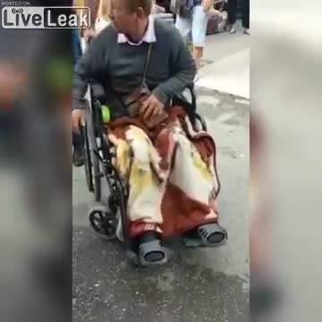 To, że ktoś jeździ na wózku, nie oznacza, że nie jest wstanie wstać, czy przejść kilka, kilkanaście metrów. Jest przynajmniej parę chorób przy których inaczej niż na wózku poruszać na dłuższą metę się nie da, ale jak trzeba to można wstać i przejść kawałek, czy to po sklepie czy gdzie indziej.