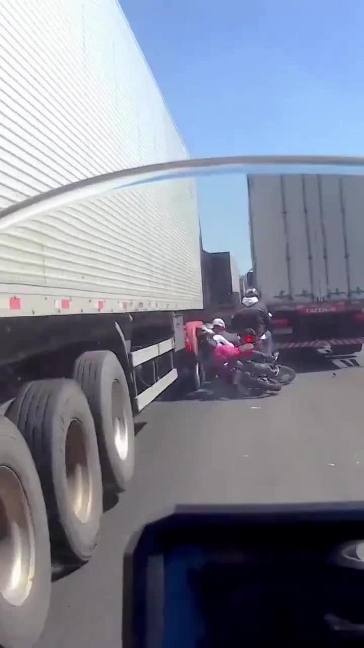 Teraz b臋dzie wiedzia艂 偶eby nie pcha膰 si臋 pomi臋dzy tiry, albo i nie b臋dzie wiedzia艂 bo z tak膮 inteligencj膮 to mo偶e do niego nie dotrze膰 jak bardzo to co zrobi艂 by艂o niebezpieczne.