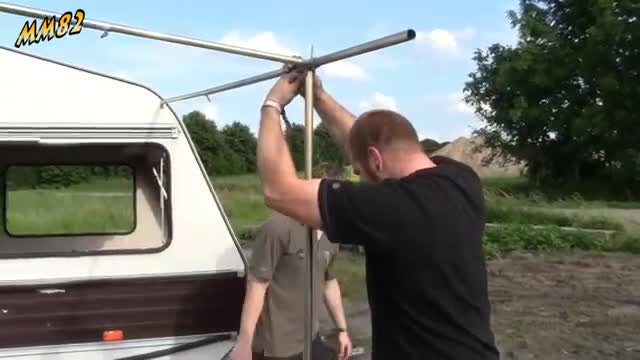 Destrukcja przyczepy kempingowej przy użyciu auta.