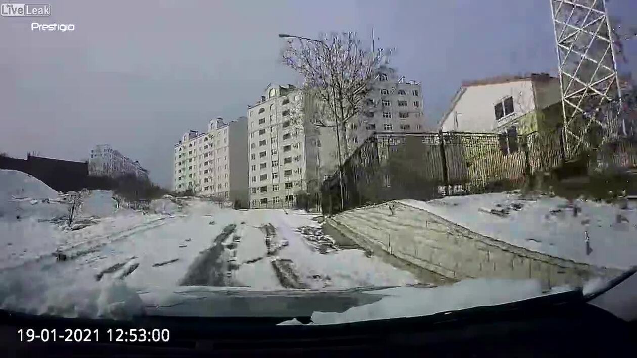 Gdyby tylko dała lekko gazu i skontrowała kierownicą, to by wyprowadziła auto.