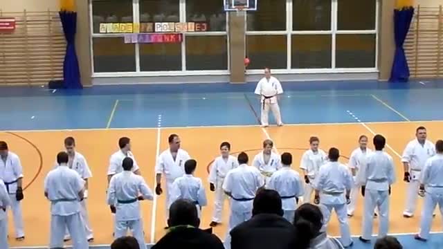 Tak to Kyokushin. Ale to raczej jakieś seminarium, trening z przyjezdnym sensei. Na egzaminie nie może być publiki aby zdający podczas walk nie chciał się pokazać i przypadkiem kogoś nie uszkodził.Może to niezrzeszony klub dlatego pozwalają na takie praktyki.