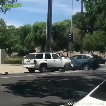Może to kierowca szarego pojazdu był agresorem i przyczyną było jego przyhamowanie przed białym? Różnie mogło być, ale widać, że pan z białego lepiej się chyba przy tym bawi