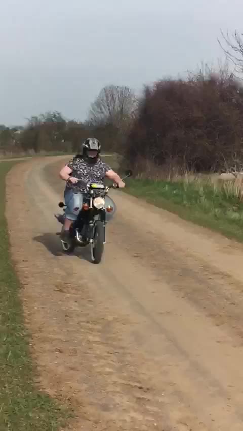 Grubas na motorku.