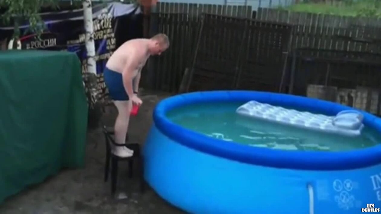 Gruby skacze do basenu