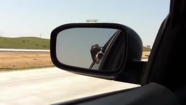 Całe szczęście, że Abbey ma tylko trochę uchyloną szybę i nie może wyskoczyć. Bo jak by dorwał tych z przeciwka to by zagryzł opony i zakopał złom w ogródku.