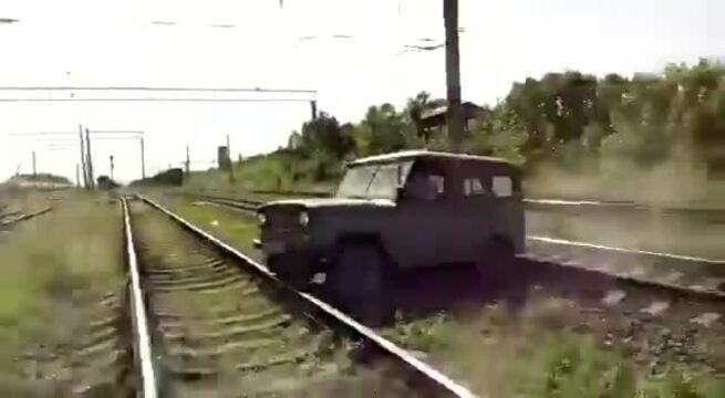 Mam UAZA. Chłopaki mogli zapomnieć o reduktorze. Na niego nie ma siły. Możliwe że góra opon ślizgała się po szynie ale gdyby wykonał skręt to wyszedłby. Sytuacja nie do powtórzenia, bo to Rosja i rozstaw torów inny, ale bez chwalenia..., myślę że ja bym wyjechał.