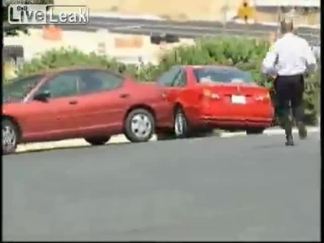Koleś ratuje samochód przed zagładą