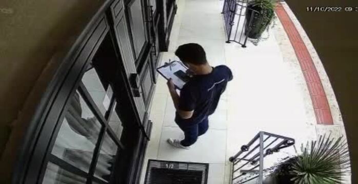 Kurier w okularkach nie chciał wyskoczyć z fona