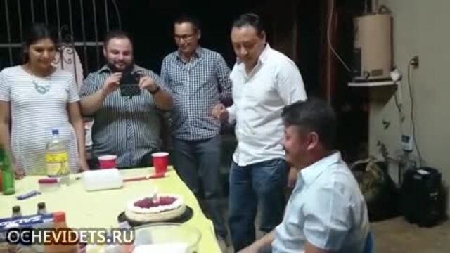 Nie wiem, co to za nacja, ale urodziny obchodzą tam całkiem niestandardowo. Smarowanie kremem z tortu po mordzie, strzelanie korkiem szampana w solenizanta i na koniec szybki koniec: