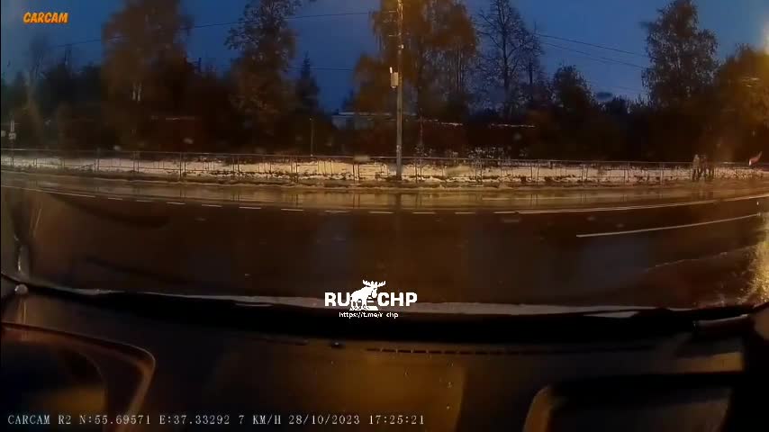Głupszy z lewej, bo po zmroku i przy takiej pogodzie bez świateł jeździ.