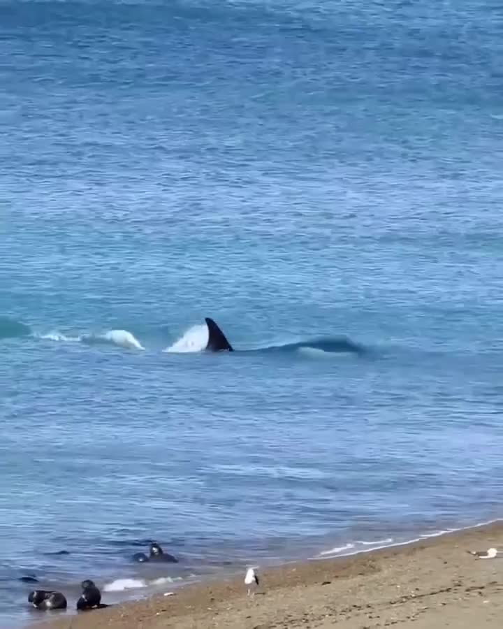 Orka robi sobie wyżerkę na plaży