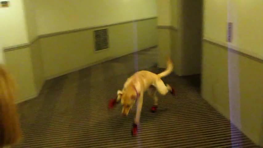 takie buty dla psów wymyślili dla psów poruszających się po terenie z rozbitym szkłem i innymi ostrymi przedmiotami porozrzucanymi po podłożu dla psów-ratowników szukających ofiar zagrzebanych żywcem pod jakimiś gruzami czy czymś.