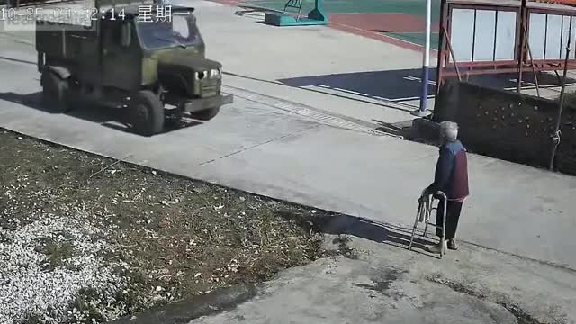 Widać, że dbają o seniorów. Pomagają im przyzwyczaić się do temperatury panującej na poziomie gleby i pozycji leżącej. To już któryś z kolei materiał z dziadkiem i pojazdem z niezamkniętą paką.