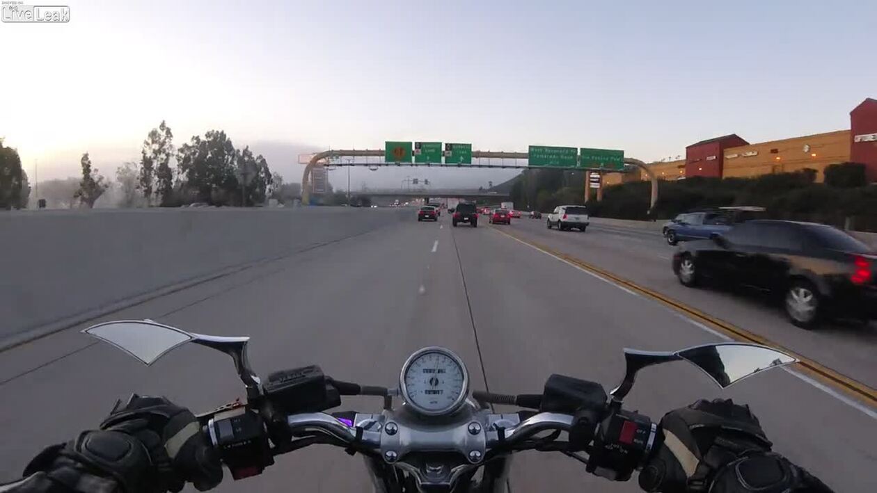Kierowca suv-a nie ogarnął martwego pola w lusterku, powodując staranowanie pojazdu z lewego pasa oraz zajechania drogi motocykliście. Na zakończenie tracąc kontrolę nad pojazdem, kierowca suv-a zmienia widzenie na odwrócone w perspektywie pionowej majestatycznie dac🤬jąc.
