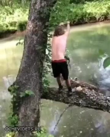 Ciekawe co gościo sobie myślał... "Przypnę sznurek / linkę grubości włosa na suchej gałęzi i skoczę sobie do rzeki od której dzieli mnie kilka zwalonych pni. To musi zadziałać!"