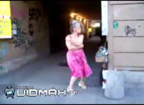 tańczy sobie normalnie ;d jak większość ludzi na dyskotece . Wydaję mi się że nie ma nic w tym śmiesznego gdyż wiekszość ludzi chodzących na dyskoteki wykonuje bardziej komiczne ruchy niż ta pani