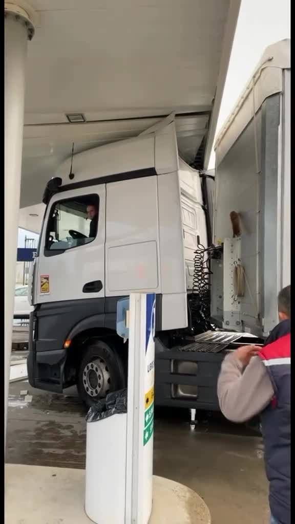 TiR na stacji benzynowej vs. zadaszenie.