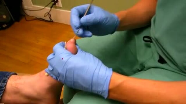 kiedyś przechodziłem ten zabieg, jak miałem z 13 lat. Babka wbiła mi igłę trochę mniejszą od mojej stopy w duży palec, po czym obserwowałem jak zrywa mi paznokieć. Fajnie było