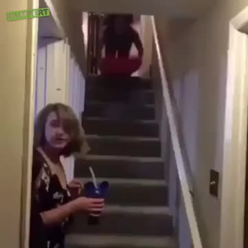 szkoda, że w hameryce mają tendencje do wykańczania schodów wykładziną dywanową a nie ceramiką lub drewnem. Na takich granitowych stopniach na pewno lepiej by się jej zjeżdżało