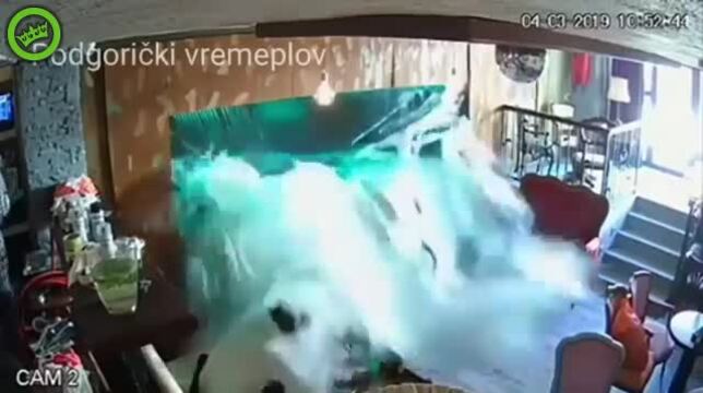 Biorąc doświadczenie z życia (podczas wichur na północy Islandii czasami lecą szyby, ze względu na nacisk wiatru) , okleiłbym akwarium przeźroczystą folią która, nawet jesli nie powstrzyma skutków, to przynajmniej je zminimalizuje.